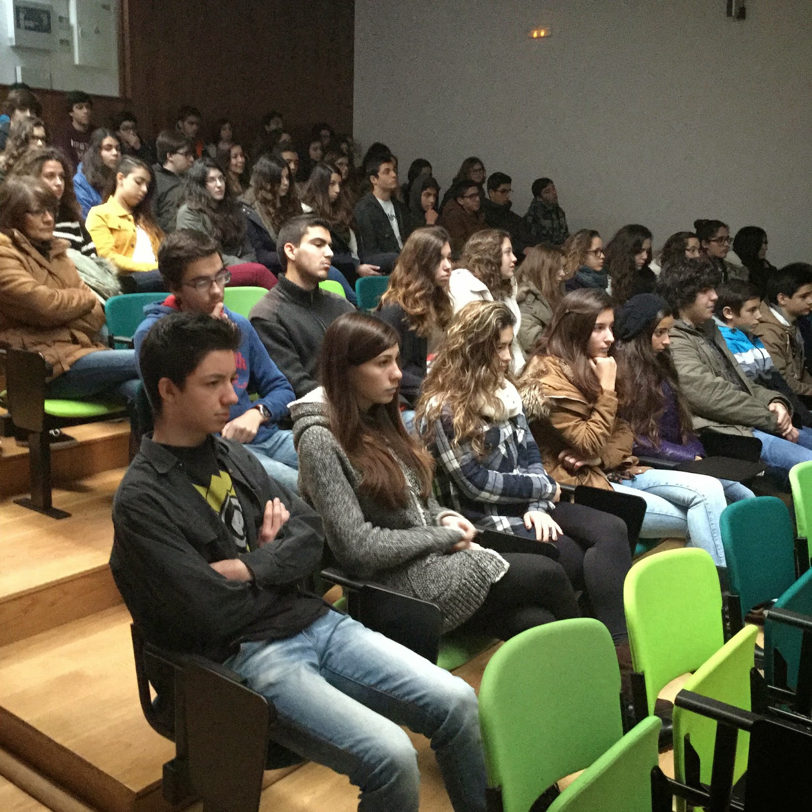 Em respeitoso silêncio, os alunos foram convidados a ver uma pequena exposição sobre o holocausto nazi, apresentada pelos alunos do 12.º LH1 e a entrar pelo túnel escuro, ao som de gritos nazis e disparos de metralhadora, onde deveriam tocar nos objetos, simbolicamente representativos dos bens pessoais expropriados aos prisioneiros. Já no auditório, ouviram, em voz off, uma síntese explicativa desta ignomínia na história da humanidade, ao que se seguiu o visionamento de uma reportagem sobre Auschwitz. Para finalizar, foram apresentados alguns filmes e livros do acervo de BE, sobre esta temática, disponíveis para a comunidade.